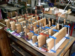 Le côté de tiroir est raboté et des morceaux de même essence sont préparés pour compenser l’usure et la hauteur du côté.