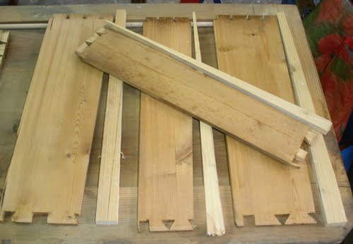 Le côté de tiroir est raboté et des morceaux de même essence sont préparés pour compenser l’usure et la hauteur du côté.