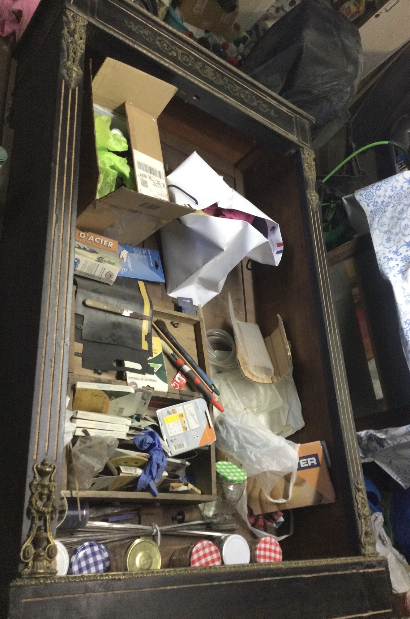 Ce meuble fut sauvé du local poubelle d’où il fut trouvé en très mauvais état :